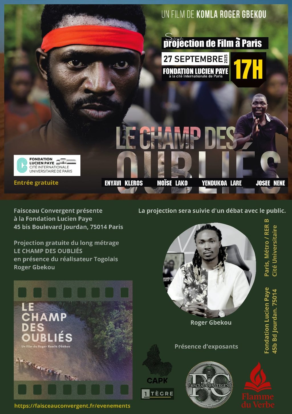Projection-débat du long-métrage LE CHAMP DES OUBLIÈS réalisé par le réalisateur Togolais Roger Komla GBEKOU qui sera des nôtres pour cette occasion.