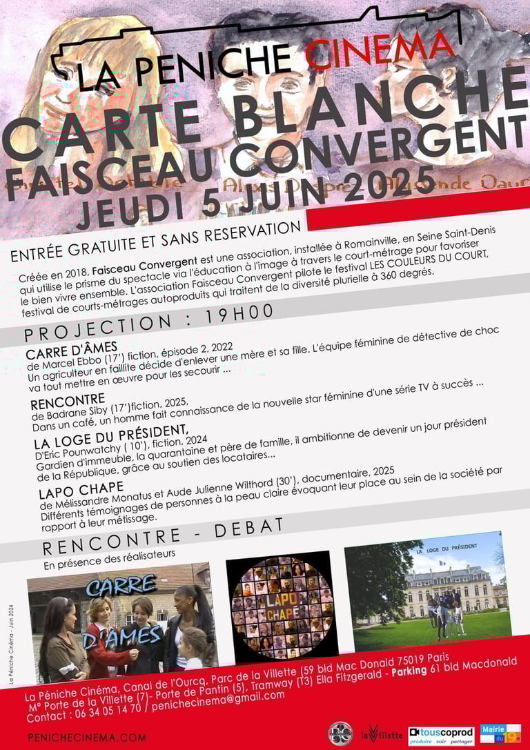 LA PENICHE DU CINEMA "LE BARUDA" de LA VILLETTE reçoit l'association FAISCEAU CONVERGENT pour une soirée projection de courts-métrages, gratuite et sans réservation en présence des réalisatrices et réalisateurs.