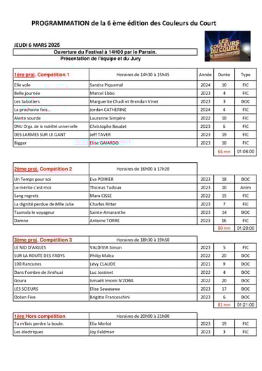 Notre événement est inclusif et accessible à toutes et à tous. Que vous soyez cinéphile passionné, créateur en herbe ou simplement curieux, vous êtes les bienvenus pour partager ces moments de cinéma et de rencontres.